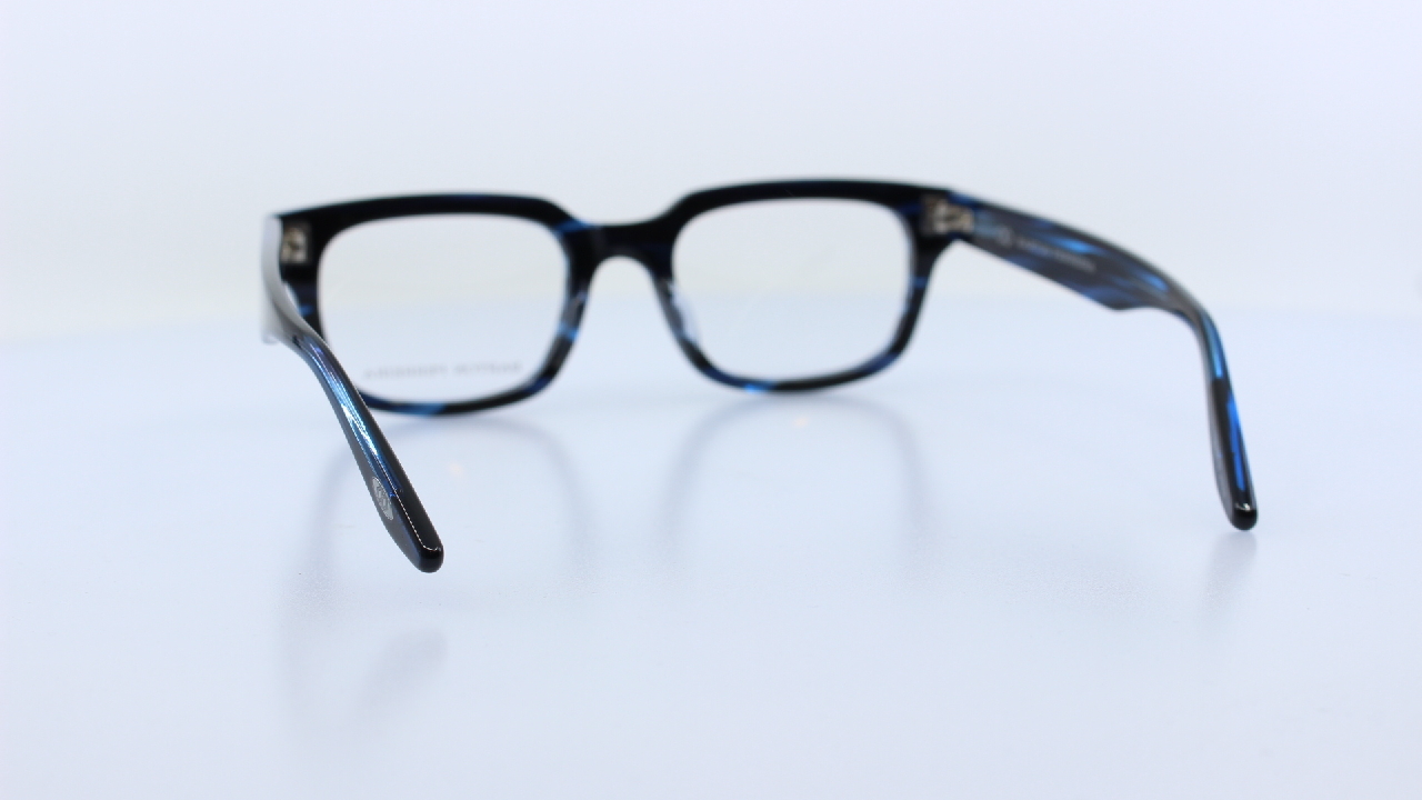FEKETE ÉS KÉK FOLTOS FRONT ÉS SZÁR RÉSSZEL KÉSZÜLT, MŰANYAG FÉRFI SZEMÜVEGKERET, KÜLÖNLEGES SZÖGLETES FORMÁVAL, BARTON PERREIRA KOLLEKCIÓJÁBÓL