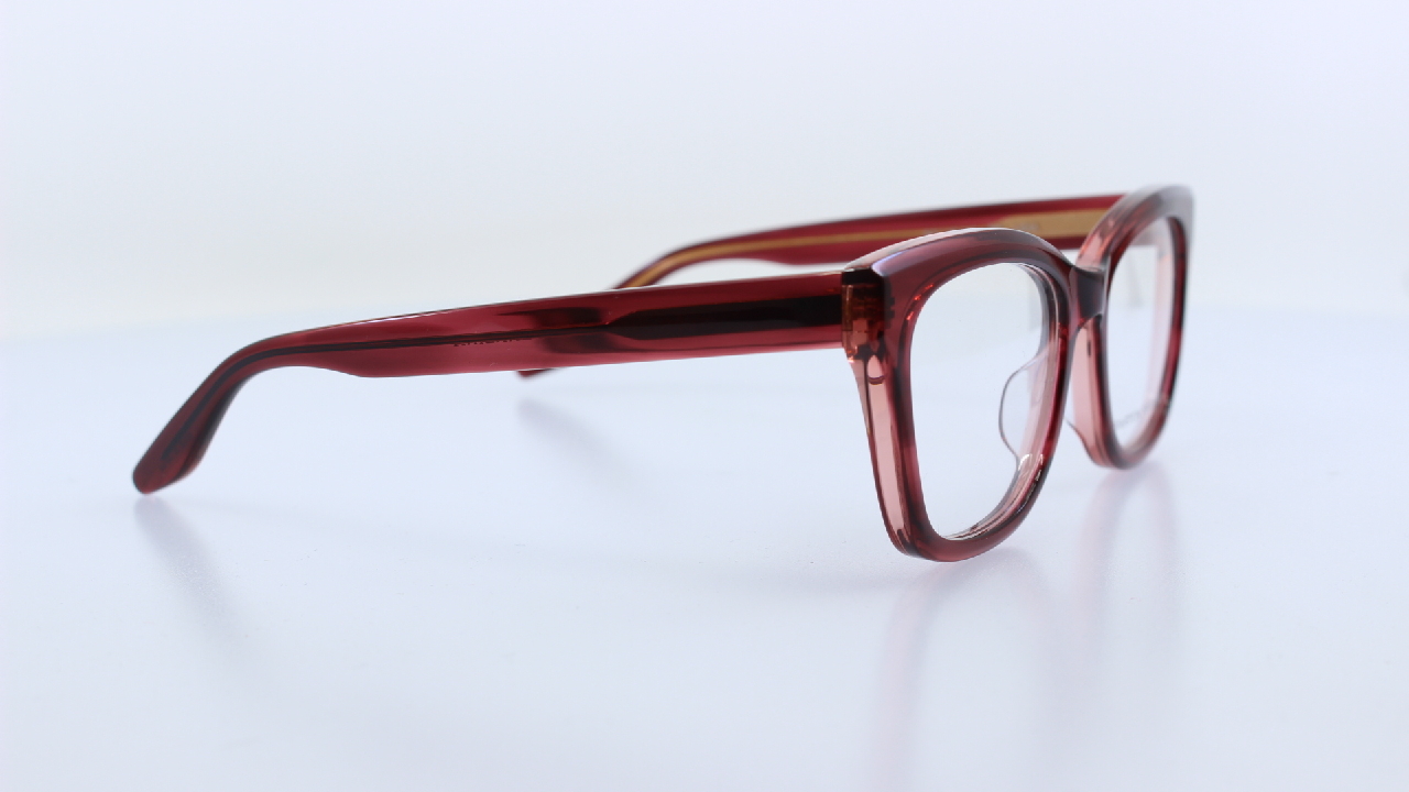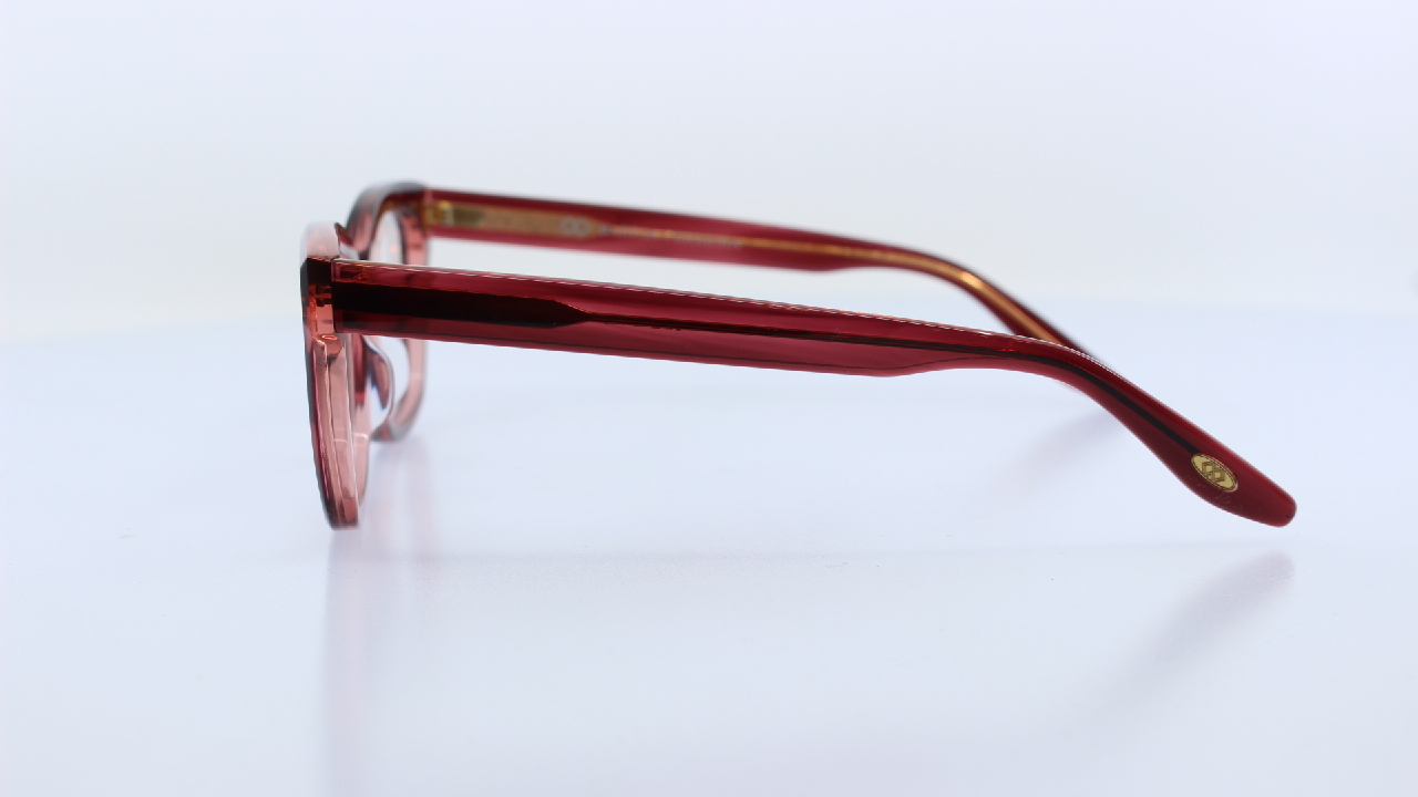 BORDÓ FRONT ÉS SZÁR RÉSSZEL KÉSZÜLT, MŰANYAG NŐI SZEMÜVEGKERET, KÜLÖNLEGES SZÖGLETES FORMÁVAL, BARTON PERREIRA KOLLEKCIÓJÁBÓL