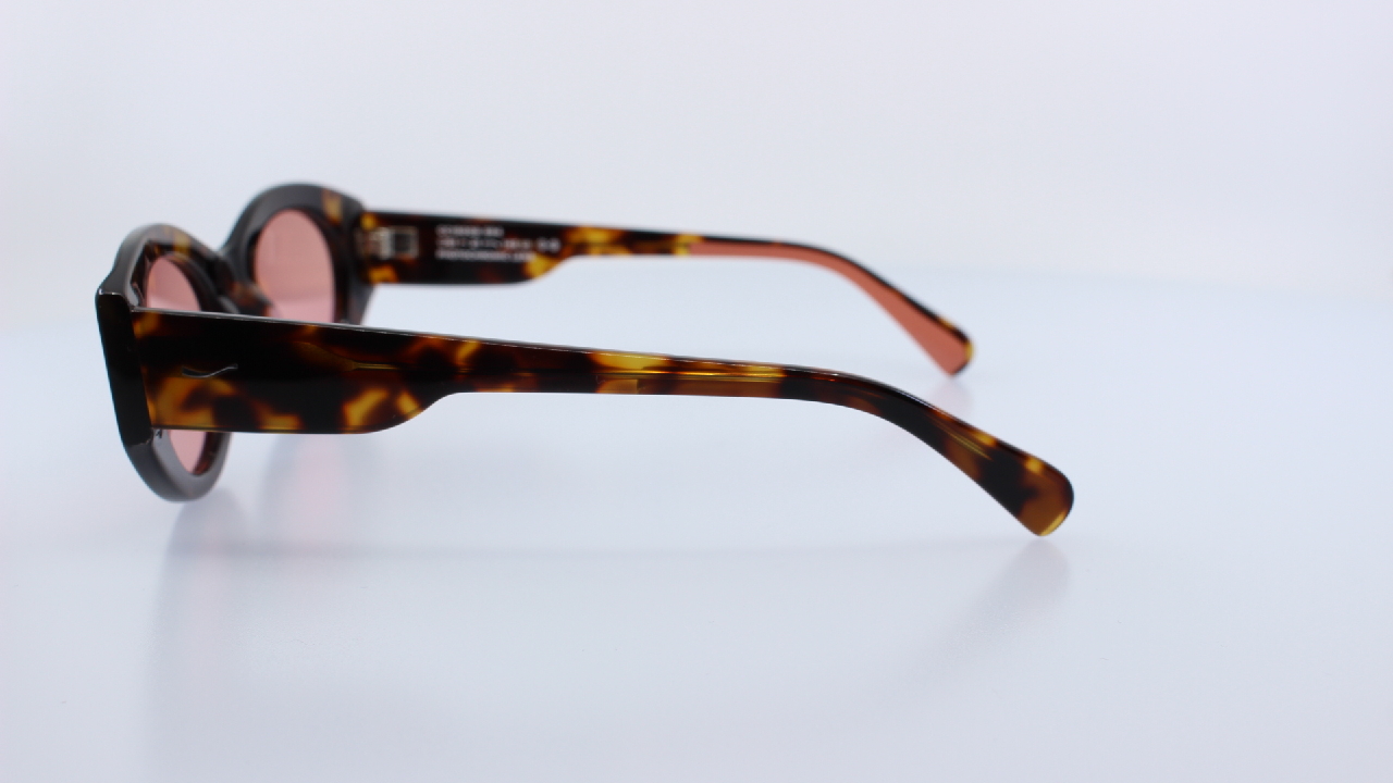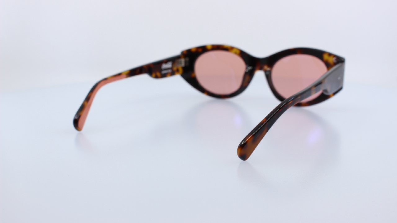 BARNA FRONT ÉS SZÁRRÉSSZEL KÉSZÜLT, NŐI MŰANYAG NAPSZEMÜVEG, OVÁLIS FORMÁVAL, LAZAC POLARIZÁLT, FOTOKRÓM LENCSÉVEL, A PERTEGAZ KOLLEKCIÓJÁBÓL.