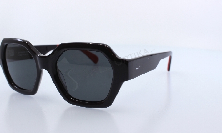ÁTTETSZŐ FRONT ÉS PIROS SZÁR RÉSSZEL KÉSZÜLT, FÉRFI SZEMÜVEGKERET, ACETÁT ALAPANYAGBÓL, SZÖGLETES FORMÁVAL, A COCACOLA KOLLEKCIÓJÁBÓL.