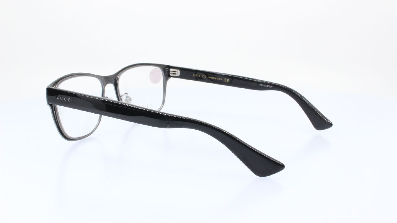 SZÜRKE SZÍNŰ FRONT ÉS SZÜRKE SZÁR RÉSSZEL KÉSZÜLT FÉM FÉRFI SZEMÜVEGKERET OVÁLIS FORMÁVAL GUCCI KOLLEKCIÓJÁBÓL.