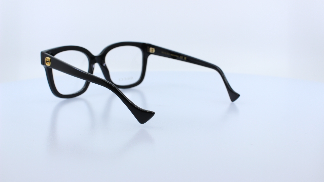 FEKETE FRONT ÉS SZÁR RÉSSZEL KÉSZÜLTL, MŰANYAG NŐI SZEMÜVEGKERET, SZÖGLETES FORMÁVAL, GUCCI KOLLEKCIÓJÁBÓL.