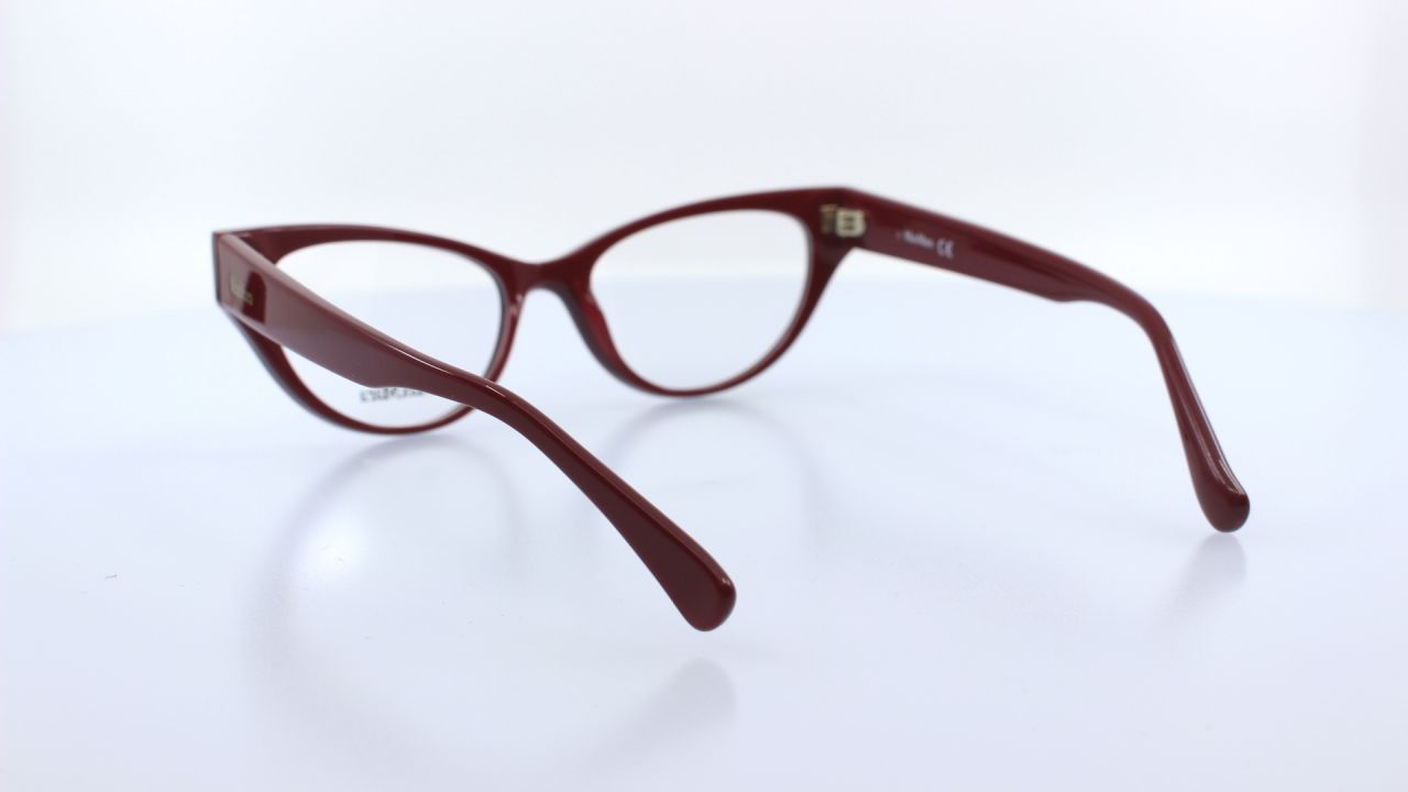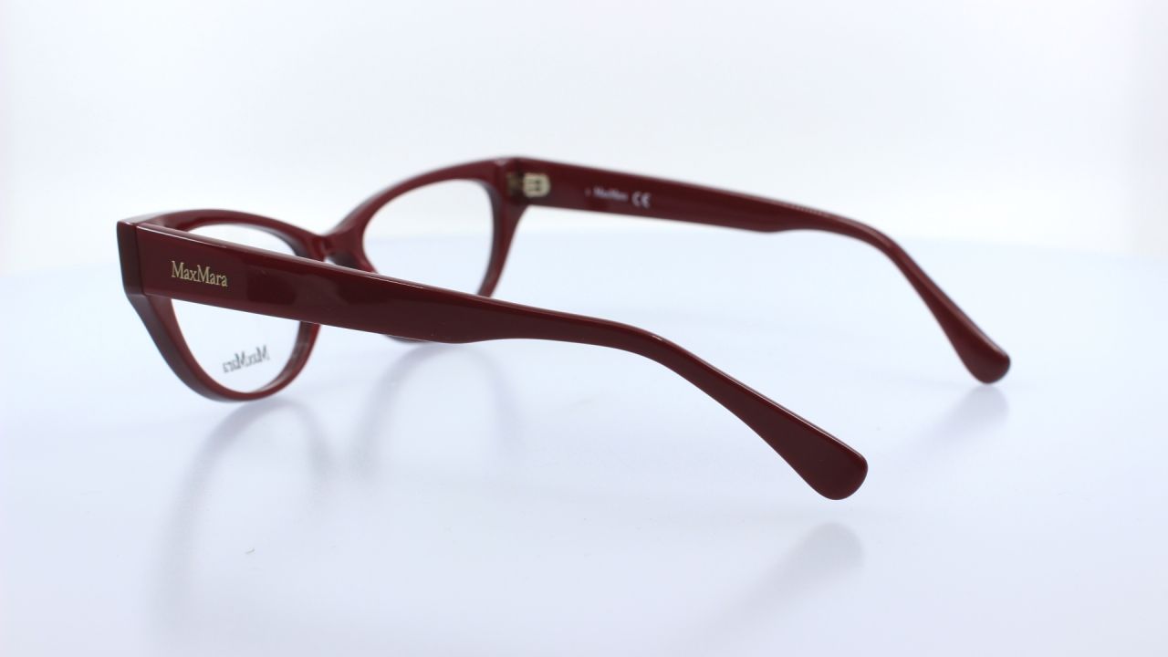 BORDÓ SZÍNŰ FRONT ÉS SZÁR RÉSSZEL KÉSZÜLT MŰANYAG NŐI SZEMÜVEGKERET MAGAS MINŐSÉGŰ ACETÁT ALAPANYAGBÓL CAT-EYE FORMÁVAL MAXMARA KOLLEKCIÓJÁBÓL.