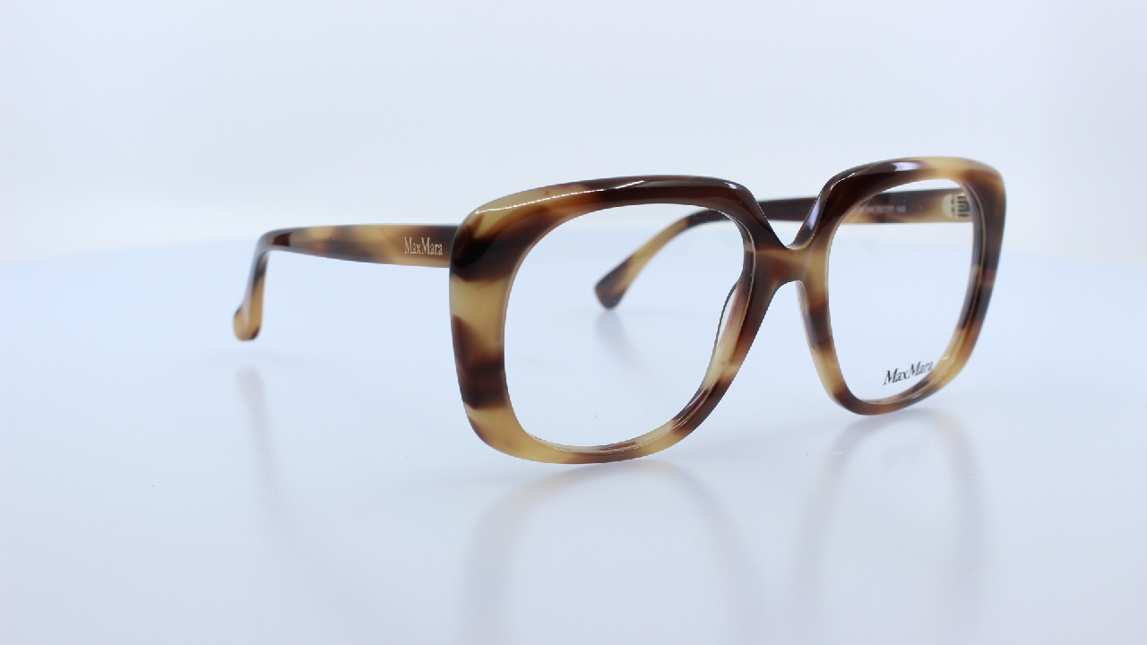 BARNA-BÉZS ÁTMENETES FRONT ÉS SZÁR RÉSSZEL KÉSZÜLT, MŰANYAG NŐI SZEMÜVEGKERET, OVÁLIS FORMÁVAL, MAXMARA KOLLEKCIÓJÁBÓL.
