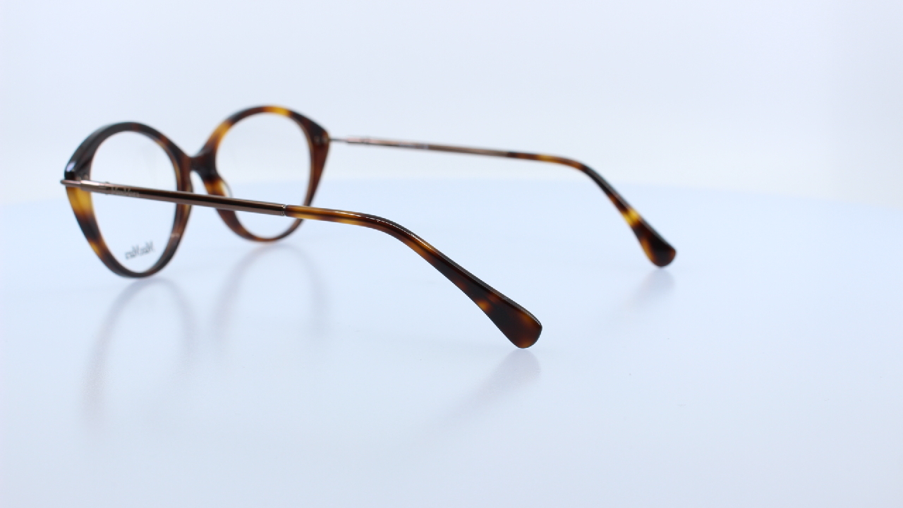 HAVANNA SZÍNŰ FRONT ÉS ARANY SZÁR RÉSSZEL KÉSZÜLT, MŰANYAG-FÉM NŐI SZEMÜVEGKERET, OVÁLIS FORMÁVAL, MAXMARA KOLLEKCIÓJÁBÓL.