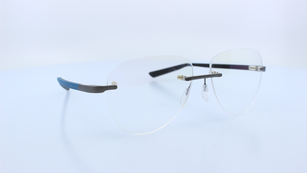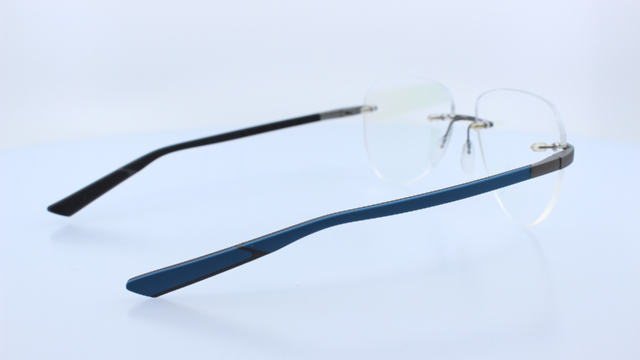 FEGYVERSZÜRKE FRONT ÉS KÉK-FEKETE SZÁRRAL KÉSZÜLT, FÉRFI FÚRT TITÁN SZEMÜVEGKERET, PILÓTA FORMÁVAL MCLAREN KOLLEKCIÓJÁBÓL.