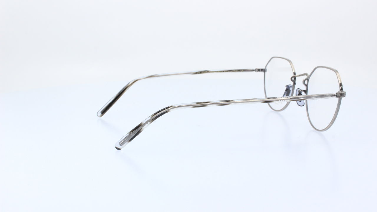 EZÜST SZÍNŰ FRONT ÉS EZÜST SZÁR RÉSSZEL KÉSZÜLT FÉM TITÁNIUM FÉRFI SZEMÜVEGKERET KEREK LENCSEFORMÁVAL OLIVER PEOPLES KOLLEKCIÓJÁBÓL.