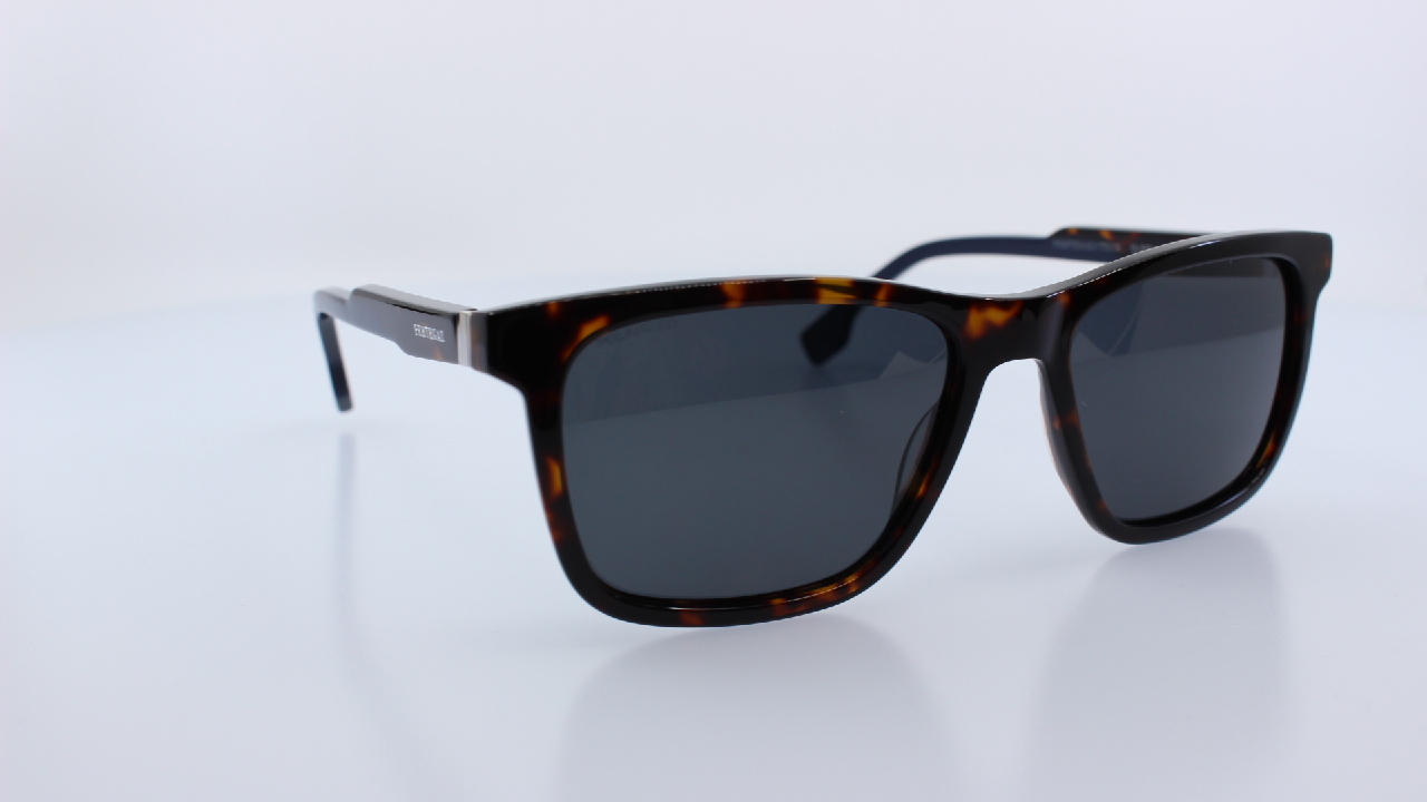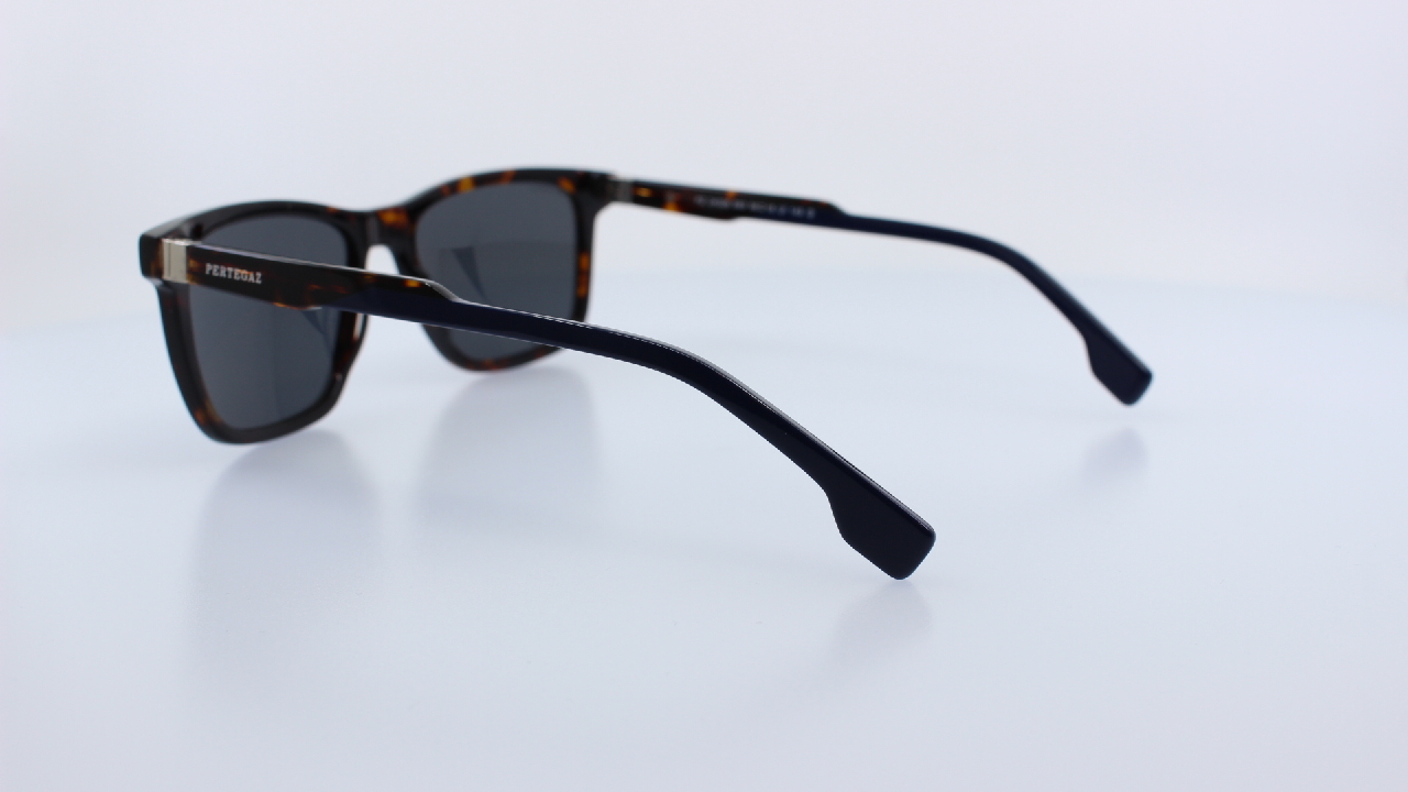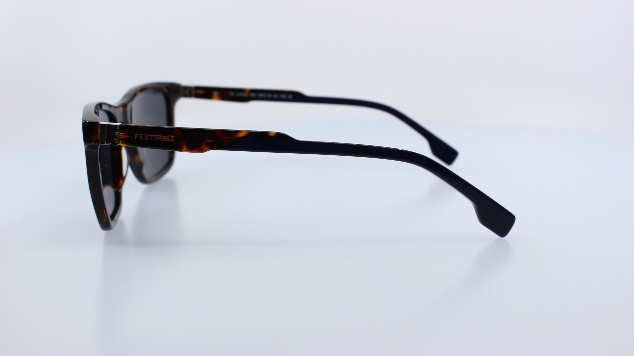 BARNA FRONT ÉS SZÁRRÉSSZEL KÉSZÜLT, FÉRFI MŰANYAG NAPSZEMÜVEG, SZÖGLETES FORMÁVAL, SZÜRKE POLARIZÁLT LENCSÉVEL, A PERTEGAZ KOLLEKCIÓJÁBÓL.