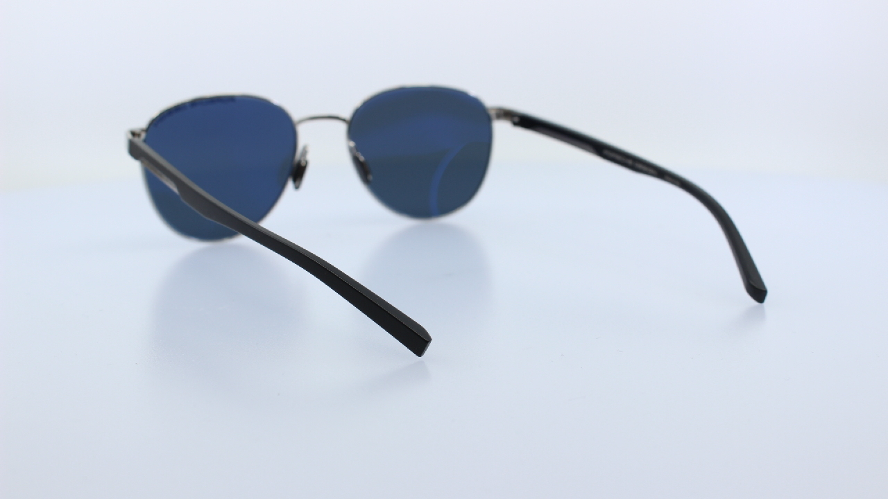 EZÜST FRONT ÉS SZÁRRAL KÉSZÜLT, FÉRFI FÉM NAPSZEMÜVEG, SZÜRKE LENCSÉVEL, KEREK FORMÁVAL, A PORSCHE DESIGN KOLLEKCIÓJÁBÓL.