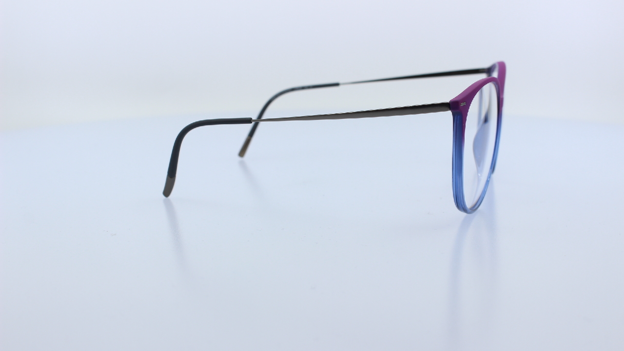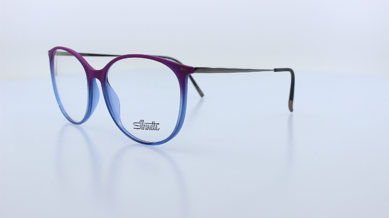 MATT ÁTMENETES LILA ÉS KÉK FRONT ÉS FÉNYES SZÜRKE SZÁR RÉSSZEL KÉSZÜLT MŰANYAG NŐI SZEMÜVEGKERET, KEREK FORMÁVAL, A SILHOUETTE KOLLEKCIÓJÁBÓL