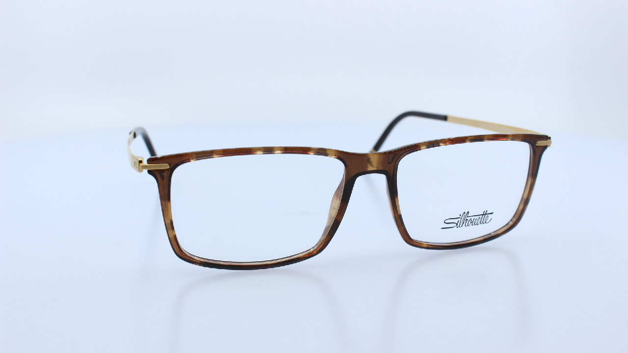BARNA FRONT ÉS ARANY SZÍNŰ SZÁRRÉSSZEL KÉSZÜLT, FÉRFI SZEMÜVEGKERET, SZÖGLETES FORMÁVAL, SILHOUETTE KOLLEKCIÓJÁBÓL.