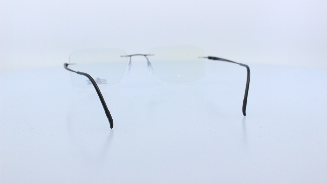 FEKETE FRONT ÉS SZÁRRAL, SÖTÉTKÉK SZÁRVÉGGEL KÉSZÜLT TITÁNIUM FÉRFI FÚRT SZEMÜVEGKERET, SZÖGLETES FORMÁVAL, A SILHOUETTE KOLLEKCIÓJÁBÓL.