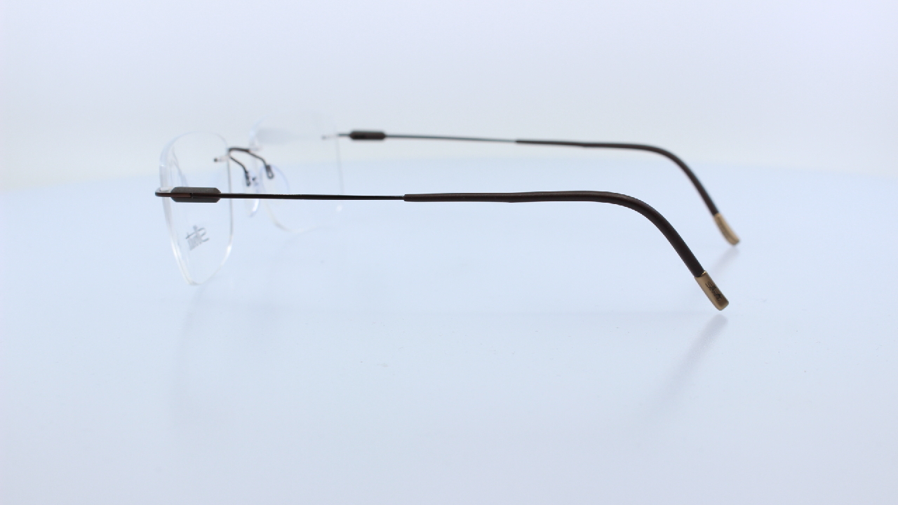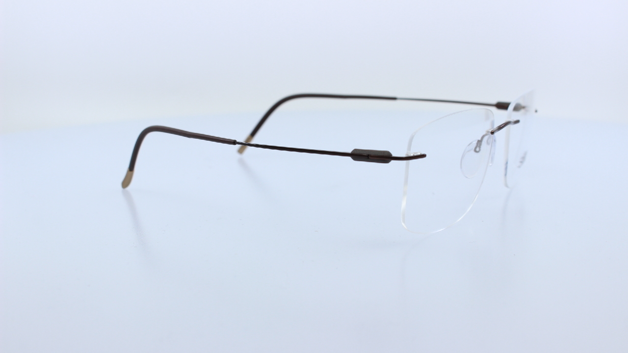 BARNA SZÍNŰ FRONT ÉS SZÁRRAL KÉSZÜLT FÉRFI TITÁNIUM KERET, SZÖGLETES LENCSEFORMÁVAL, A SILHOUETTE KOLLEKCIÓJÁBÓL.