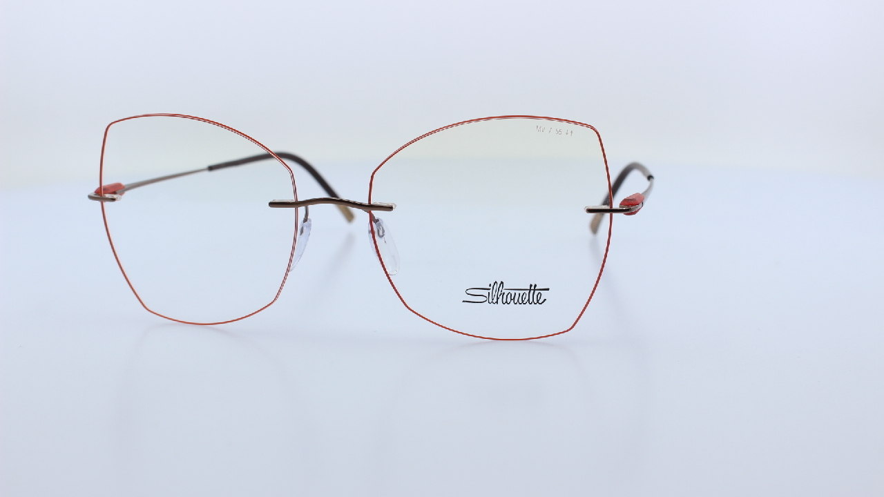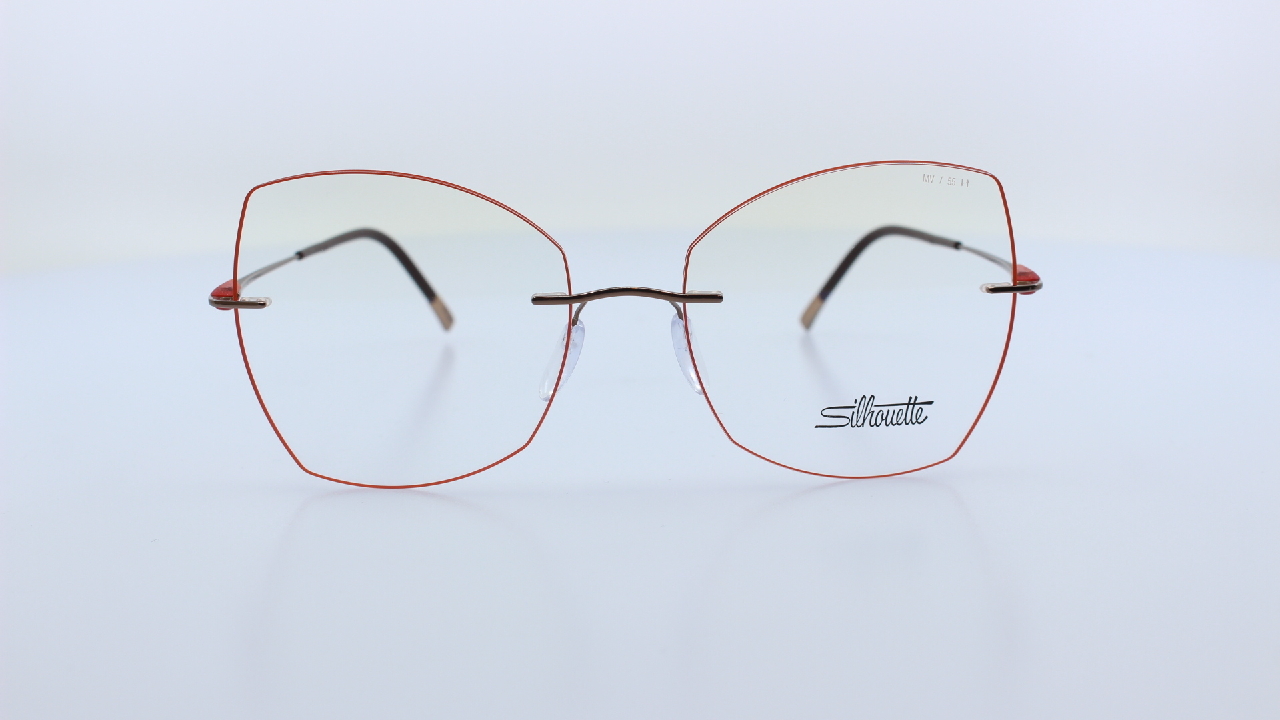 BRONZ FRONT ÉS SZÁRRAL KÉSZÜLT NŐI TITÁNIUM KERET, EGYEDI SZÖGLETES PILLANGÓ LENCSEFORMÁVAL ÉS NARANCSSÁRGA GROOVE LENCSE SZÍNEZÉSSEL. A SILHOUETTE KOLLEKCIÓJÁBÓL.