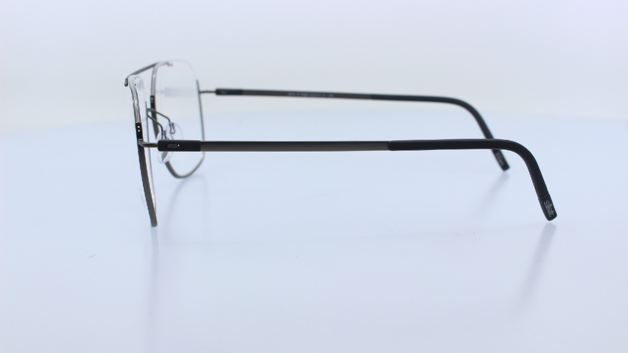 EZÜST SZÍNŰ FRONT ÉS SZÁRRÉSSZEL KÉSZÜLT FÉRFI SZEMÜVEGKERET, TITÁN ALAPANYAGBÓL, KÜLÖNLEGES OVÁLIS LENCSEFORMÁVAL ÉS ÁTKÖTŐVEL, A SILHOUETTE KOLLEKCIÓJÁBÓL.