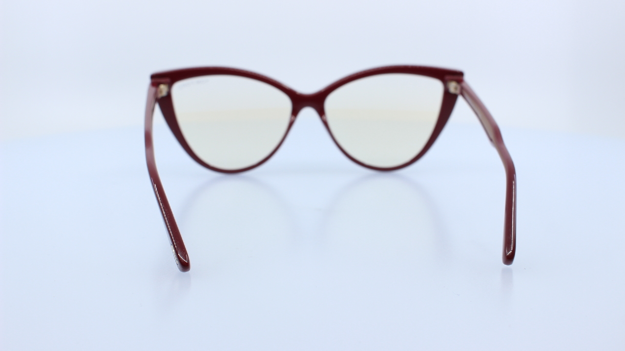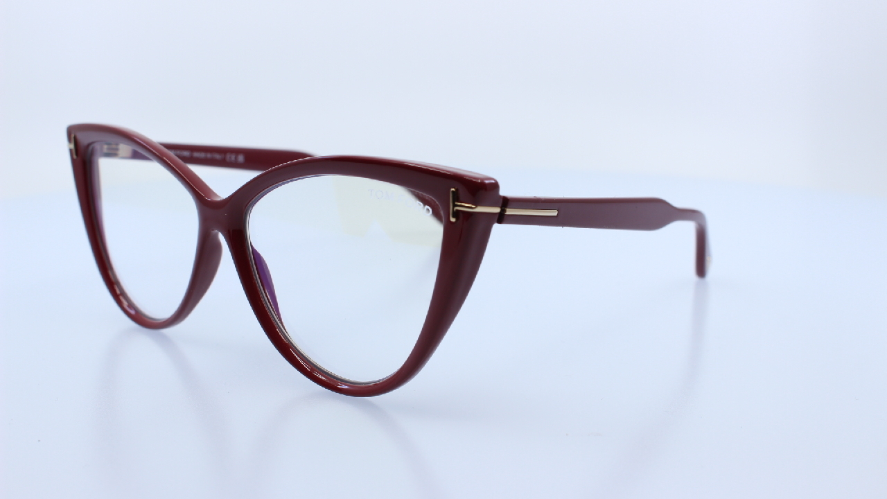 BORDÓ FRONT ÉS SZÁR RÉSSZEL KÉSZÜLT MŰANYAG NŐI SZEMÜVEGKERET MAGAS MINŐSÉGŰ MŰANYAG ALAPANYAGBÓL KÜLÖNLEGES CAT-EYE FORMÁVAL TOM FORD KOLLEKCIÓJÁBÓL.