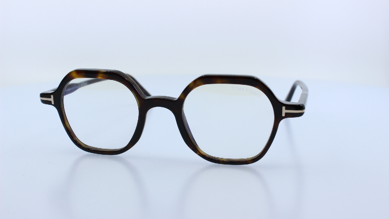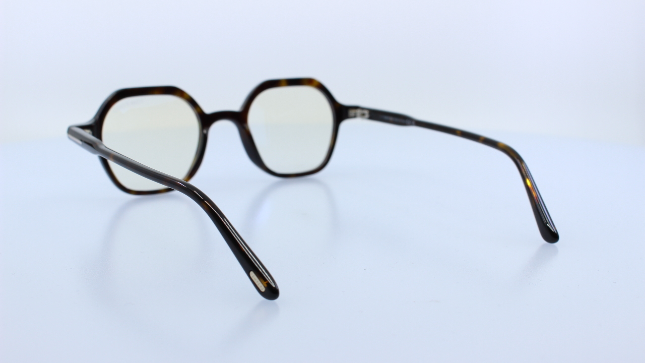 BARNA FRONT ÉS SZÁR RÉSSZEL KÉSZÜLT, MŰANYAG FÉRFI SZEMÜVEGKERET, MAGAS MINŐSÉGŰ ACETÁT ALAPANYAGBÓL, KÜLÖNLEGES SZÖGLETES KEREK FORMÁVAL, A TOM FORD KOLLEKCIÓJÁBÓL.