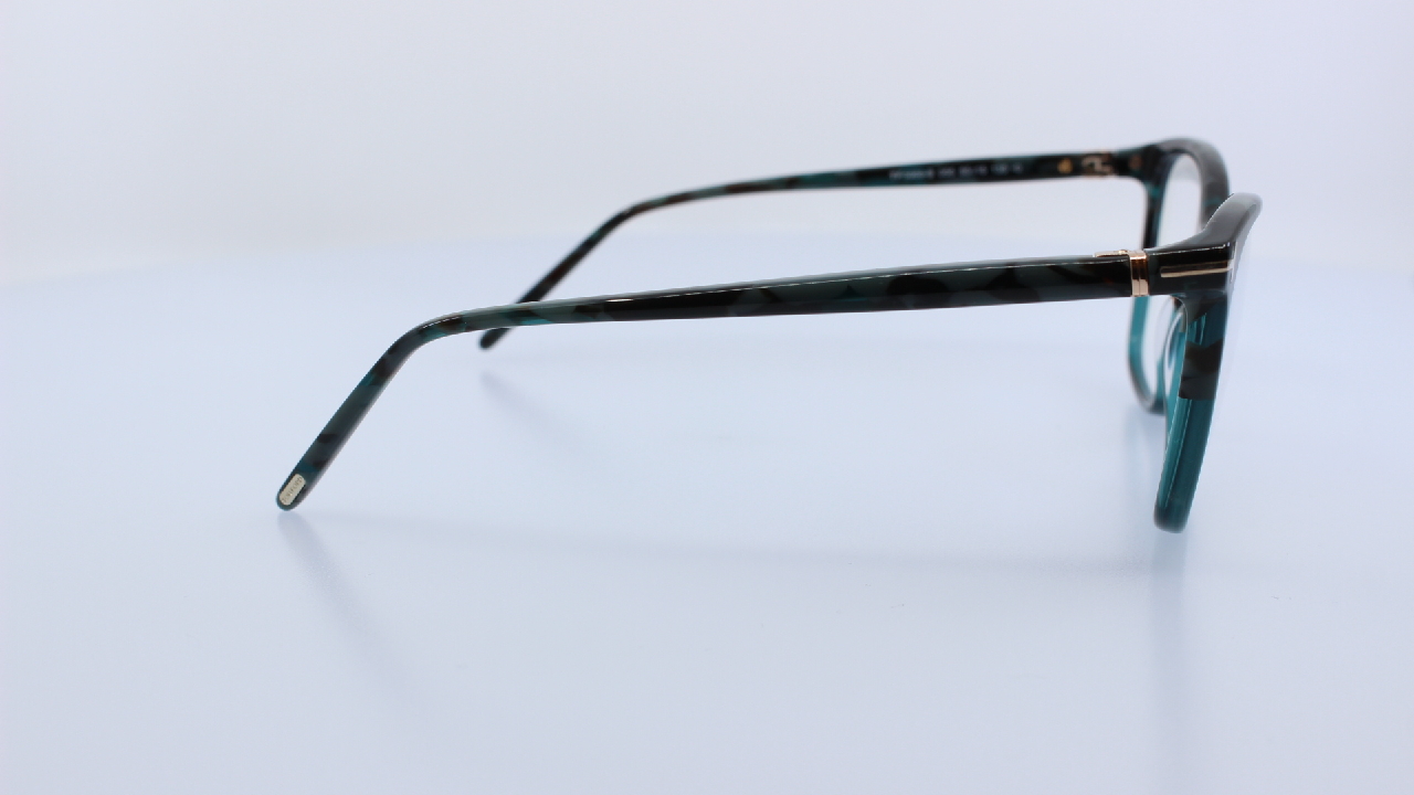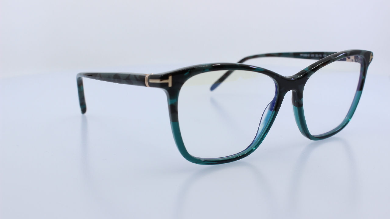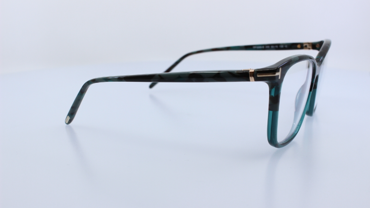 ZÖLD FRONT ÉS SZÁR RÉSSZEL KÉSZÜLT, MAGAS MINŐSÉGŰ MŰANYAG ALAPANYAGBÓL, NŐI SZEMÜVEGKERET, SZÖGLETES FORMÁVAL, A TOM FORD KOLLEKCIÓJÁBÓL.